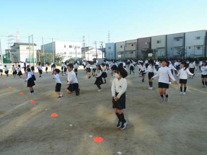 高学年の「なわとび集会」がありました。寒くなってきましたが、朝から運動することで身体も温まり、気分もスッキリ。1日の学習の始まりです。