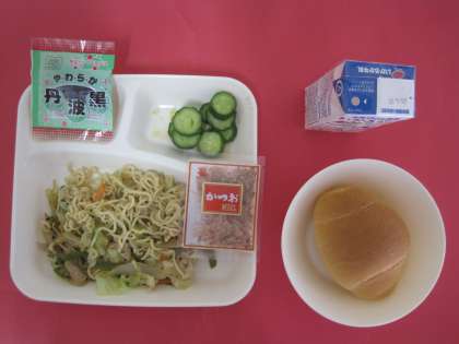 豚肉、中華めん、キャベツ、たまねぎ、ピーマン、にんじんを使い、塩、こしょう、薄口しょうゆ、濃口しょうゆで味つけした和風焼きそばです。かつおぶしをかけて食べました。