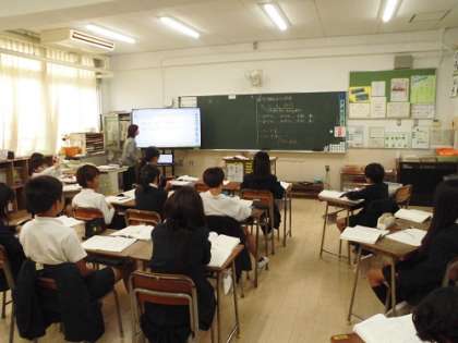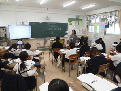 国語の「日本語と外国語」の学習です。日本語と外国語を比べ、日本語の特徴について考えています。