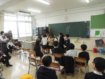「お楽しみ会」をしています。学期末ならではの風景です。みんなで仲良く楽しいひと時を過ごしていました。