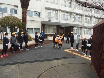 児童会のメンバーがたくさん正門に立ち、あいさつの呼び掛けをしていました。