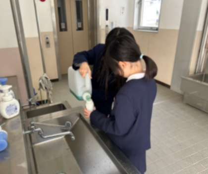 健康委員会の児童が各所の石けんを補充してくれています。石けんをつけることも忘れずに手洗いをしてほしいです。