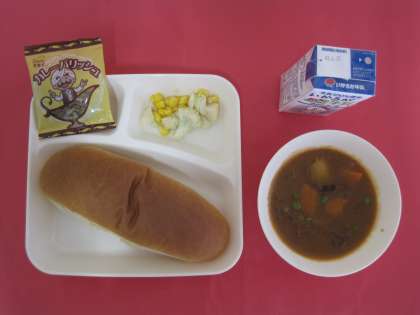 牛肉、じゃがいも、たまねぎ、にんじん、グリンピースを使い、ケチャップ、トマトピューレ、砂糖、塩、こしょう、ローレル、トンカツソース、ウスターソース、チキンブイヨンで味つけし、水どき上新粉でとろみをつけたビーフシチューです。