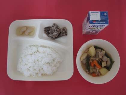 1年に1回登場するくじらのたつたあげです。冷凍のたつたあげを油で揚げました。児童に大変好評でした。
