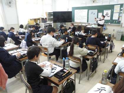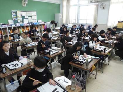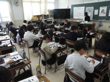 書写の学習です。とめ、はね、はらい、筆づかいに気をつけて練習しています。