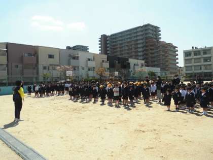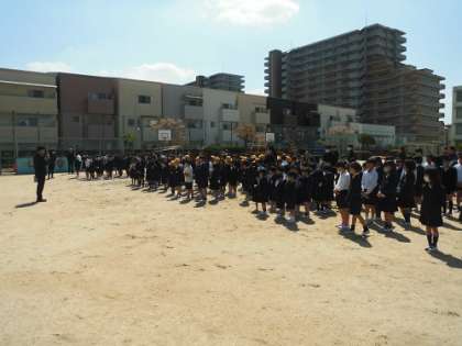 4月14日(月)、火災を想定した避難訓練を行いました。学年が上がり教室が変わったので、避難経路の確認を含め緊急時、災害時の対応の仕方を学びました。