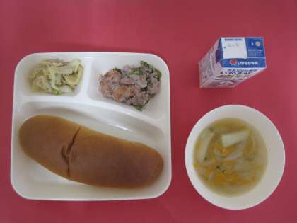鶏肉、じゃがいも、たまねぎ、にんじん、パセリを使ったスープとツナとキャベツの炒め物です。