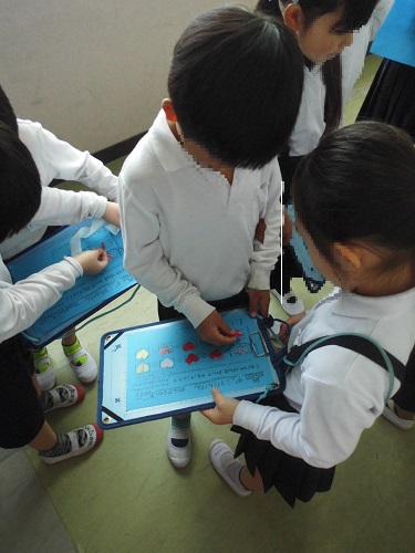 教室をたんけんすると、カードにシールをはってもらっていました。2年生は先輩としてはり切り、1年生は休み時間にすれ違ったり声を掛けられたりする2年生と一緒に活動できて楽しかったようです。