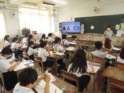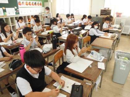 角度の大きさの表し方の学習をしています。円を切り取って重ね、一方を回転させていろいろな角をつくっています。