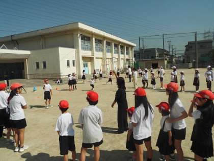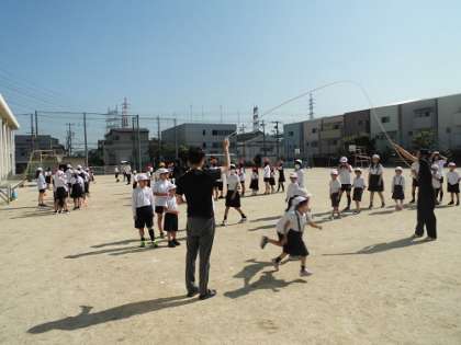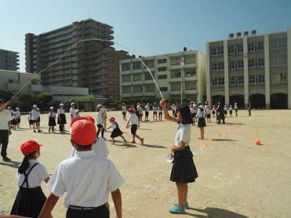 6月5日(木)、1年生と6年生の大なわ交流会がありました。6年生が1年生を優しくアシスト、手をつないで跳んだり、タイミングを教えたり、声をかけ励ましたりしていました。交流を深めつつ、体力づくりに励んでいます。