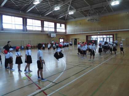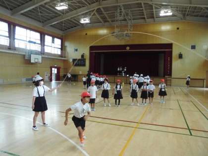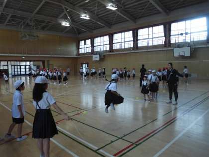 10日(火)、2年生と4年生の大なわ交流会がありました。雨天のため体育館で実施しました。学年をこえて励まし合い、楽しみながら取り組んでいました。
