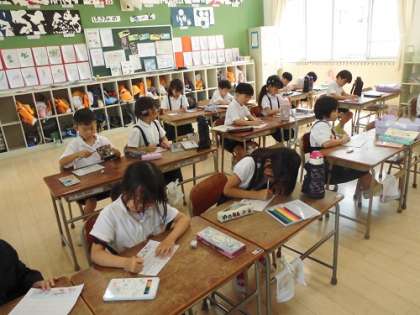 昨日に行った「町たんけん」で、お世話になった地域や施設の方々にお礼の手紙を書いています。昨日のことを思い出しながら、感謝の気持ちを伝えようと頑張っていました。