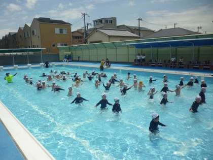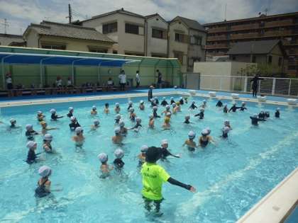 17日(火)、1・2年生も「プール開き」をしました。1年生は、初めてのプール水泳でしたが、おくすることなく、大きなプールでの水慣れや水遊びに楽しんでいしました。今後の学習が楽しみです。