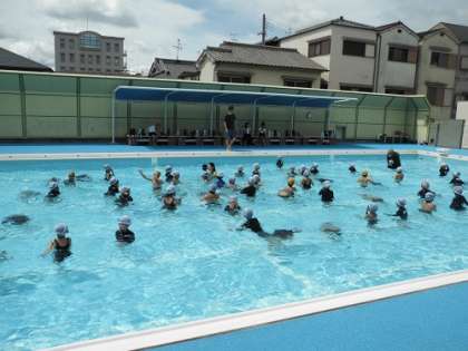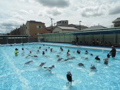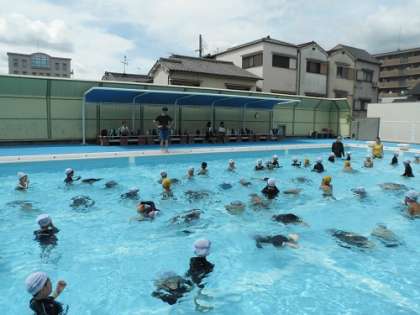 1・2年生のプール学習です。ういたり、もぐったりできる子どもが増えています。大きなプールにも慣れ、プールでの活動を楽しんでいます。