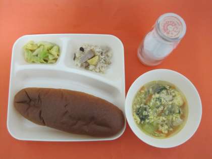 スープです。卵のアレルギーのある児童は、卵を入れる