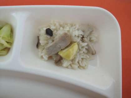 焼き豚、くり、しいたけを使った中華風のおこわです。