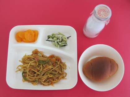 カレー味のスパゲッティです。
