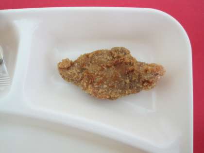 学校でパン粉をつけた一口トンカツです。