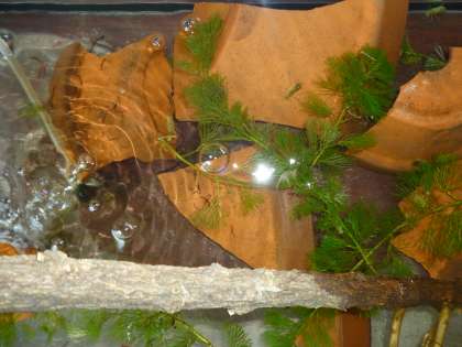 職員室前ピロティーの、2つの水槽の中にいます。