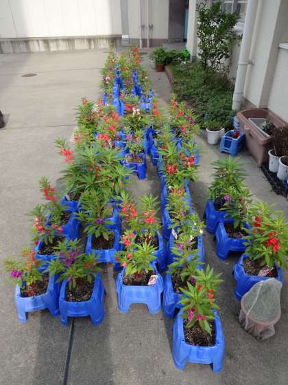 期末個人懇談会の際に、ホウセンカの植木鉢を持って帰っていただきます。