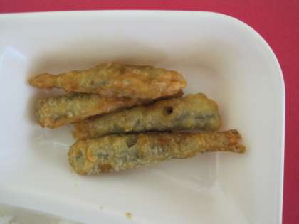 冷凍のいわしのてんぷらを揚げ、砂糖、みりん、酢、こい口