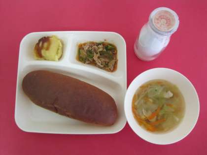 鶏肉を使った洋風のスープと季節のさつまいもを使った