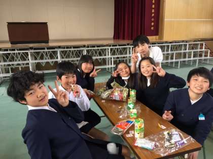 お菓子を食べながら学級対抗のゲームを楽しみ最高の「卒業茶話会」になりました。