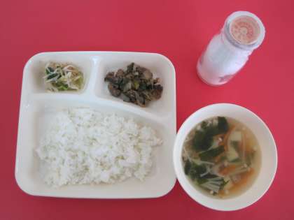 とうふの他に焼き豚、にんじん、えのきたけ、わかめを使ったスー