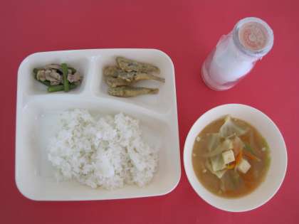 とうふ、キャベツ、たまねぎ、にんじん、えのきたけを使った