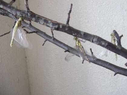 早速見に行くと、「やご」から「とんぼ」に羽化しているのが、数匹。