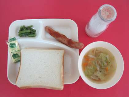 鶏肉、キャベツ、たまねぎ、にんじん、パセリを使ったスープと季節の