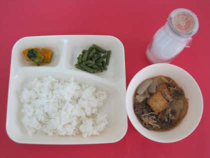 牛肉、ふ、糸こんにゃく、あつあげ、たまねぎ、えのきたけを