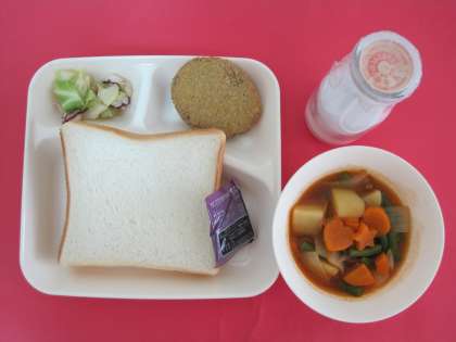 豚肉、じゃがいも、たまねぎ、にんじん、三度豆、トマトを使った