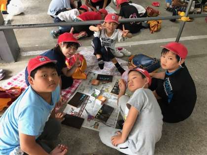 最終日3日目の活動は、まず、焼き板に絵を描きました。