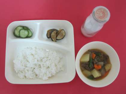 苦手な児童の多いなすを焼き、みそだれをかけました。