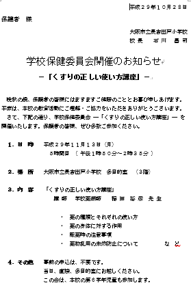 今日<10月28日(土)>配布しましたので、ご確認ください。