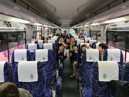 長吉出戸小学校から「モクモクファーム」に向かう観光バスの車内です。