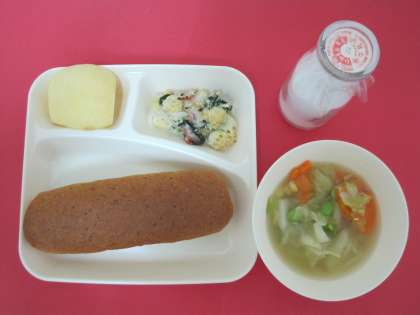 季節のほうれん草を使ったグラタンとりんごです。りんごは、