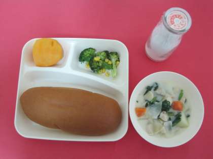 ブロッコリーとコーンを蒸して、ドレッシングであえたサラダと
