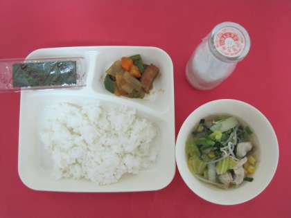 鶏肉、はくさい、もやし、コーン、にら、しいたけを使った中華