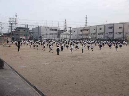 火曜日は低学年、金曜日は高学年が運動場に集まって縄跳びをします。