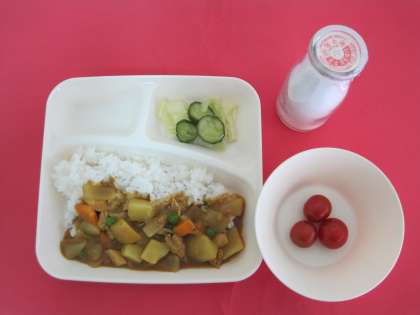 キャベツときゅうりを使ったサラダとプチトマトです。