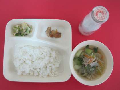 豚肉、たまねぎ、チンゲンサイ、もやし、にんじんを使った中華風の