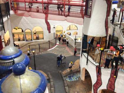 扇町駅の階段を昇っていくと、キッズプラザ大阪が見えてきました。