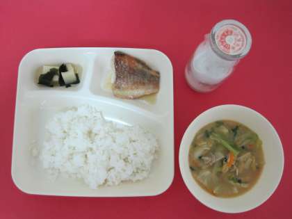 赤魚に塩で下味をつけて焼き、しょうゆだれをかけました。