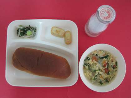卵にアレルギーのある児童は、卵を入れる前に取り分けた中華スー