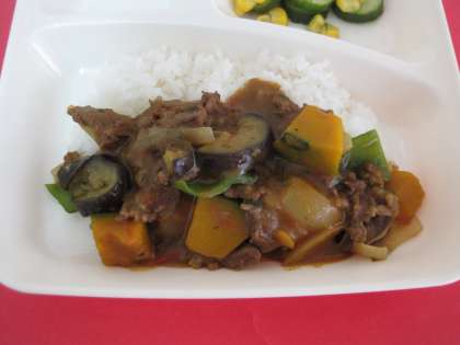かぼちゃ、なす、トマト、ピーマンを使った夏野菜のカレーライス