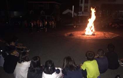 1日目の最後の行事は、キャンプファイヤーです。雨の心配もなく自然の中でみんな楽しい時間を過ごすことができました。歌や、ゲームなど体いっぱい動かし、大きな声を出しみんなが一つになることができました。