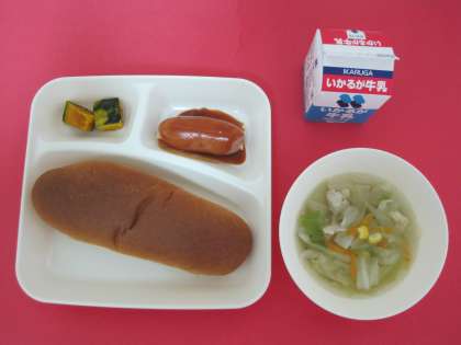 のスープと季節のかぼちゃを焼いて塩で味つけました。