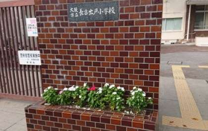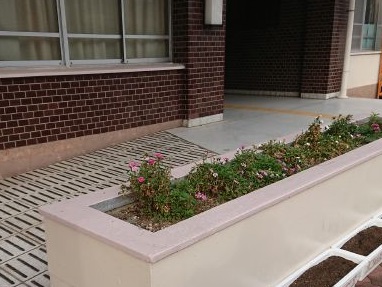 正門から玄関にかけては、ニチニチソウが咲いています。